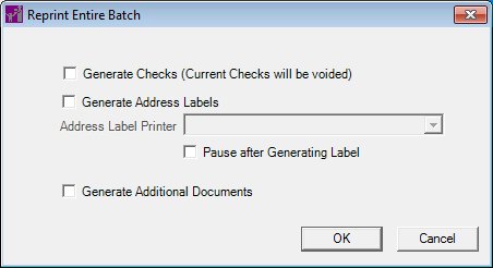 If one or more special conditions exist that affect a control on the Reprint Entire Batch screen, the condition(s) are documented for that specific control below.